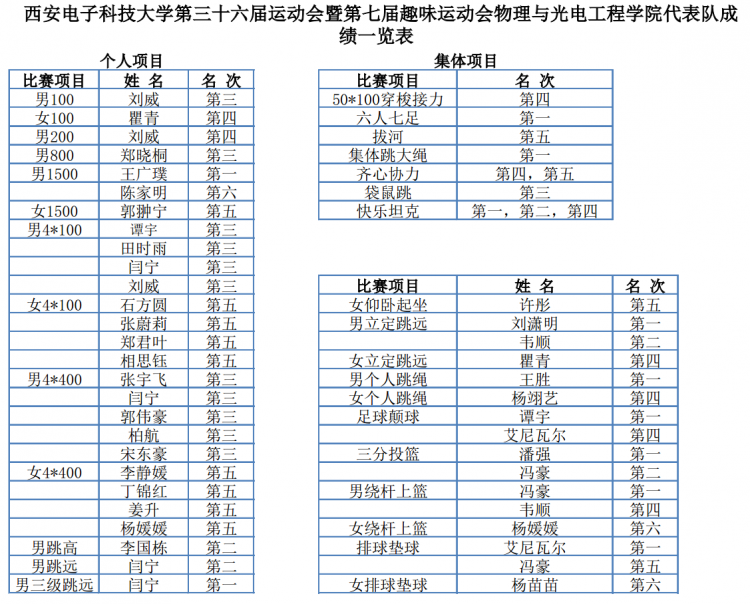”的名字通过主席台的广播不时在场上回响,最终我院囊括了多个比赛项目的冠军,团体总分第三名,与第二名仅仅相差九分。