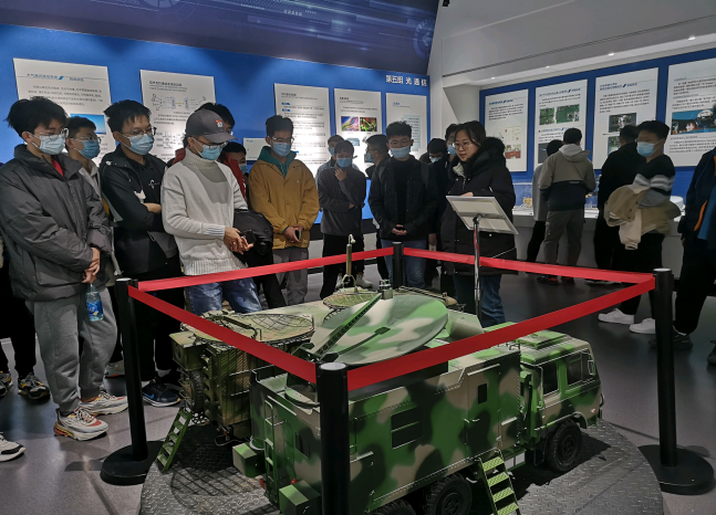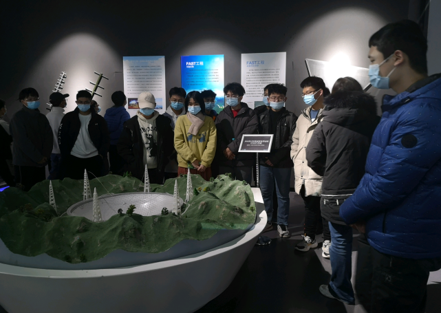 在雷达展厅中,展出了被誉为“中国天眼”的500米口径球面射电望远镜模型(简称FAST)。我校段宝岩院士带领的团队就参与了FAST这一项目。同学们在深入了解后,被多年来科研工作者的奉献与担当所感动,为老一辈西电人艰苦奋斗的革命豪情所震撼。
