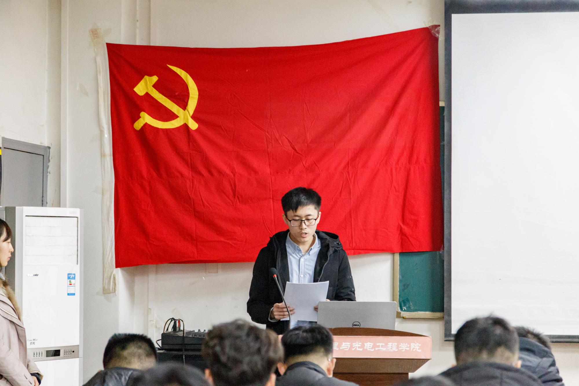 会上,王佳乐同志代表预备党员发言,他表示在今后的学习生活中一定不负重望,继续努力,始终用高标准来严格要求自己,进一步加强党性修养和党性锻炼,不断地自我反省、提高和完善,真正在思想上和行动上入党,做一名优秀的共产党员。